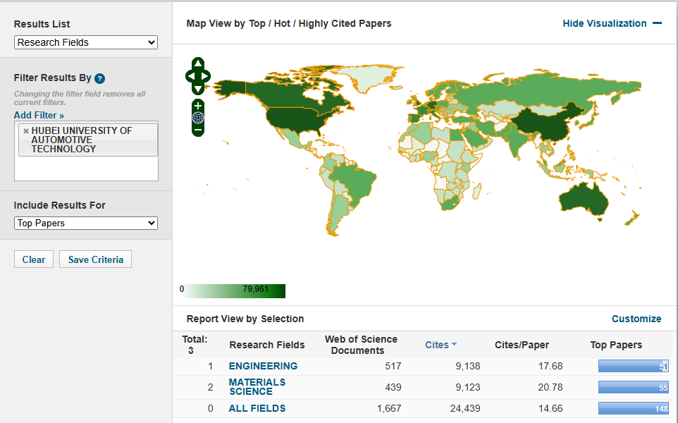 据统计,在本期ESI数据覆盖范围(2015年1月1日至2025年8月31日)内,我校ESI论文1667篇,总被引频次24439次,高被引论文148篇,全球总排名5741位。其中,ESI材料科学论文439篇,总被引频次9123次,高被引论文55篇,排名全球1552位;ESI工程学论文517篇,总被引频次9138,高被引论文51篇,排名全球第1659位。