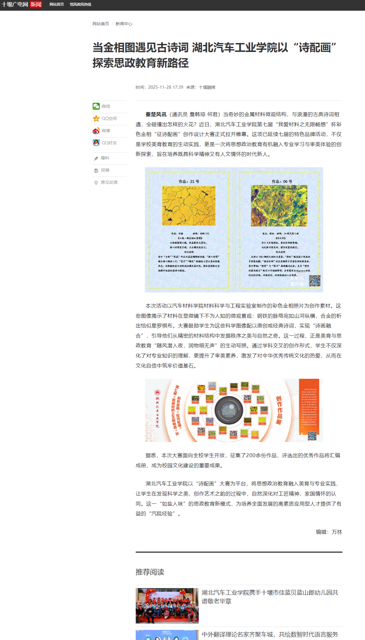 【十堰广电网】当金相图遇见古诗词 湖北汽车工业学院以“诗配画”探索思政教育新路径