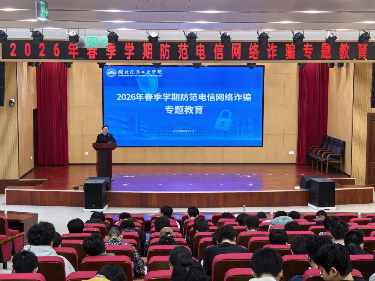 本网讯(文/图 黄聪悰)为持续提高学生识骗防诈能力和法律意识,切实维护学生合法权益和财产安全,4月14日下午,学校在产教大楼四楼报告厅开展2026年春季学期防范电信网络诈骗专题教育,三百余名学生参加。