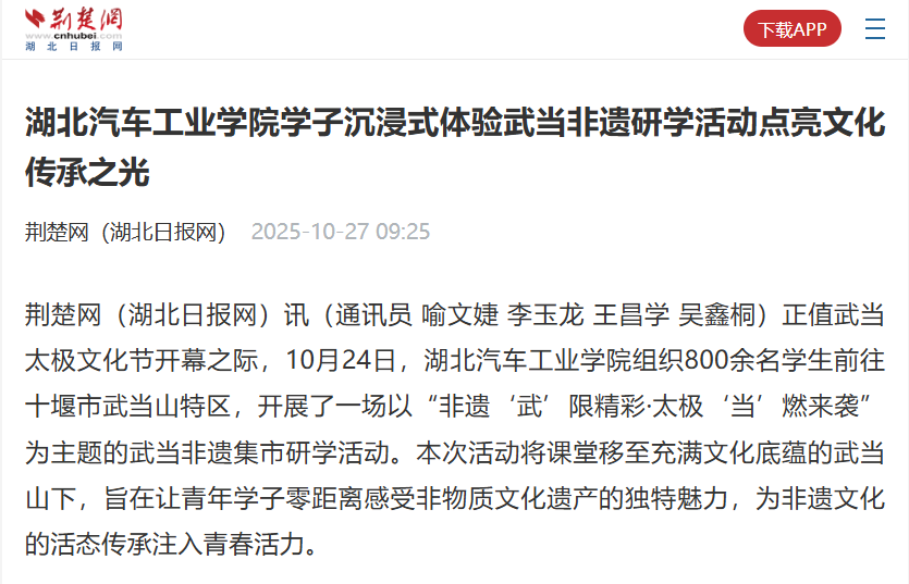 【荆楚网】湖北汽车工业学院学子沉浸式体验武当非遗研学活动点亮文化传承之光