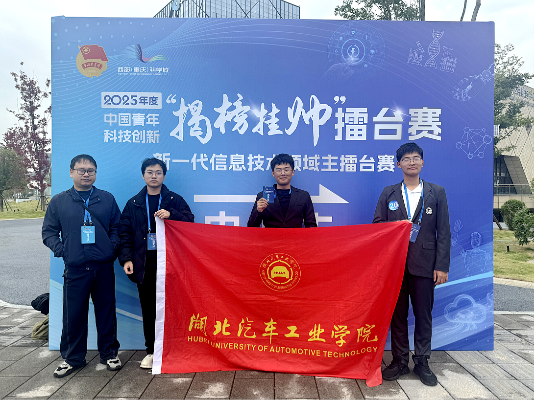本报讯(文/图 徐鑫)10月28日,第十九届“挑战杯”全国大学生课外学术科技作品竞赛2025年度“揭榜挂帅”擂台赛“新一代信息技术领域”主擂台赛在重庆高新区落幕。我校智能网联汽车学院李飞、数字经济学院徐鑫指导,杨舒涵、王彦康、黄顺等同学组成的团队,凭借《智导学——基于deepseek大模型和Neo4j知识图谱的个性化教学诊断系统》项目脱颖而出,喜获国家级三等奖。