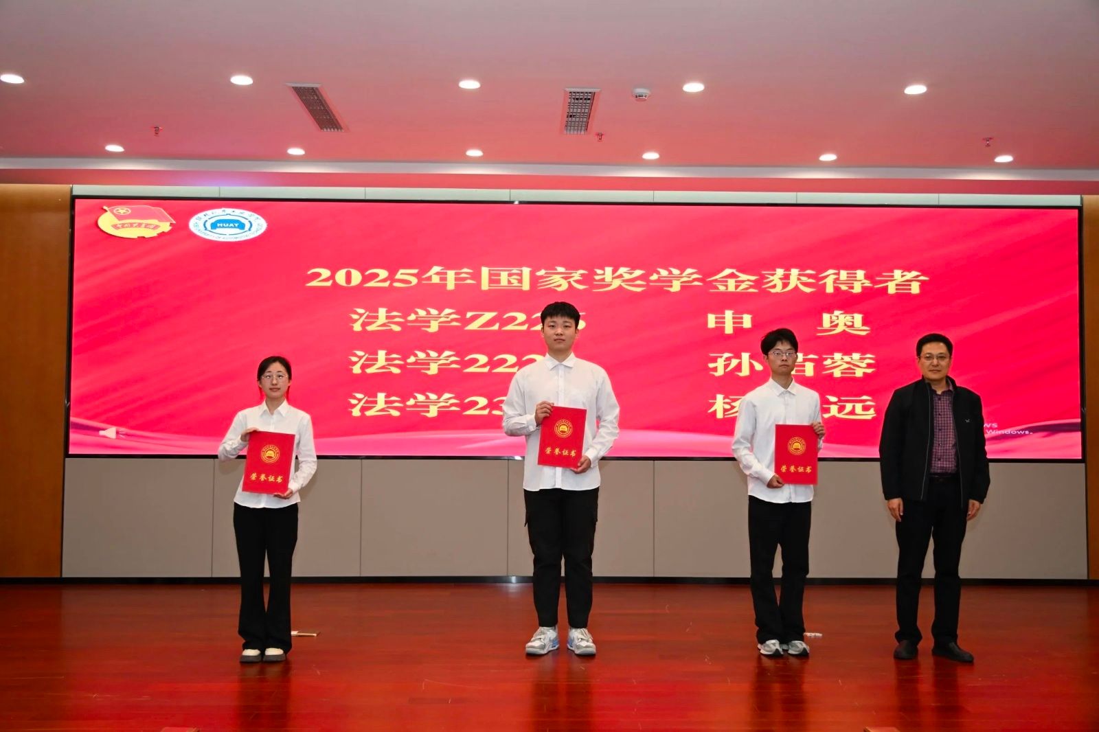 大会对2025-2026学年优秀学生进行表彰,学院党委副书记李童宣读表彰名单。现场还举行校外指导老师聘任仪式,学院党委书记计毅波为湖北瀛楚律师事务所徐绪柏律师颁发聘书。徐绪柏以“法科生的生涯规划与职业选择”为题作专题讲座,为法科学子职业发展指明了方向。